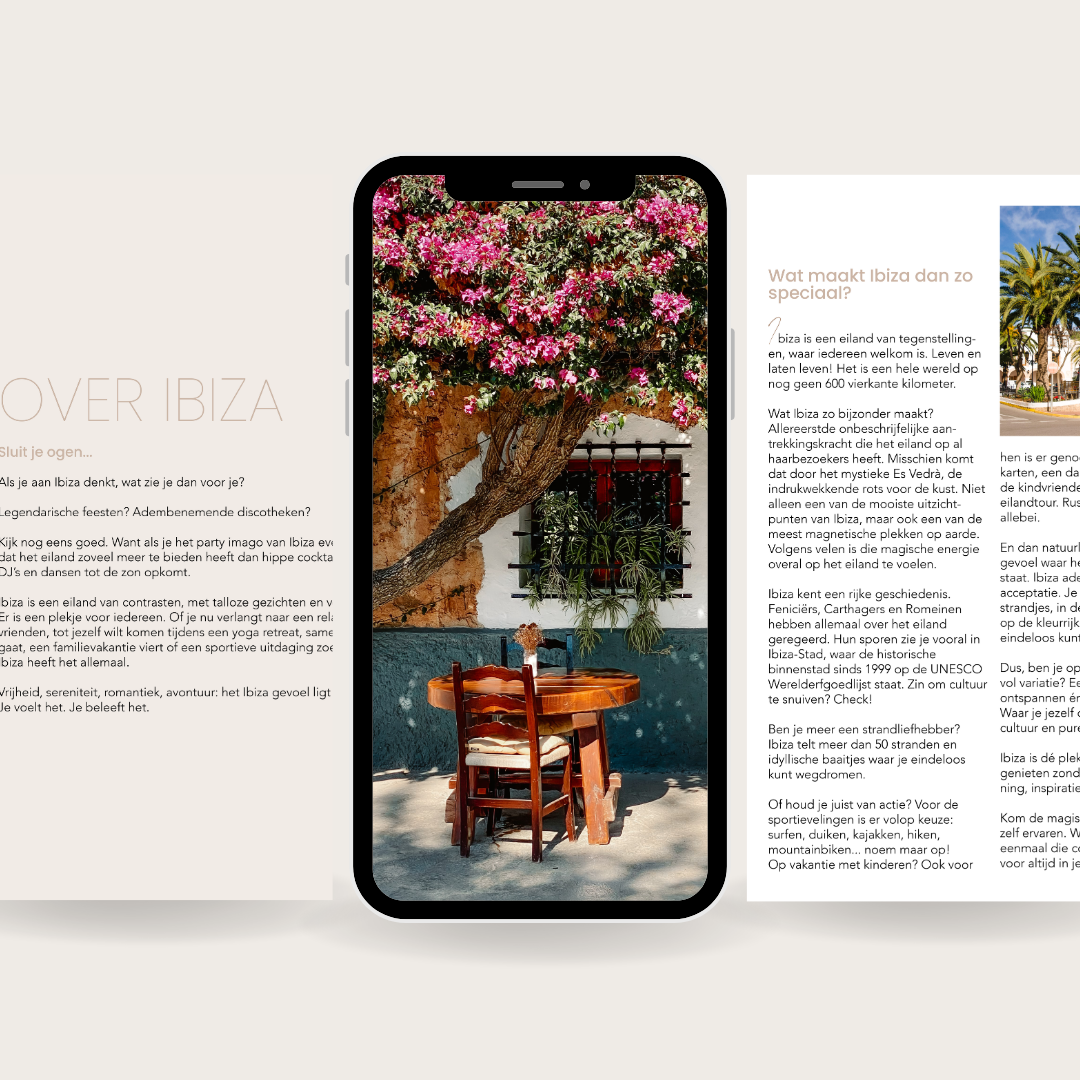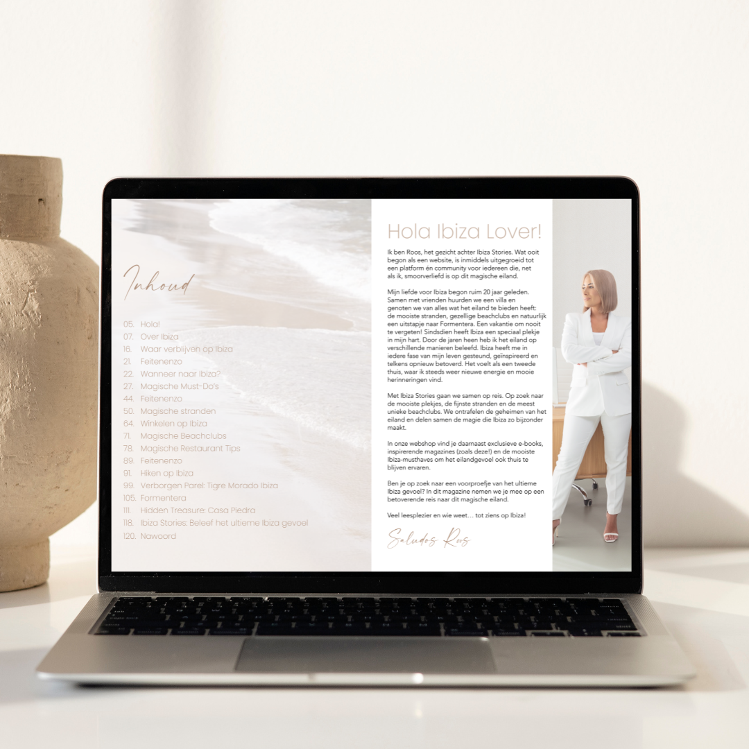 Met liefde samengesteld door Roos van Ibiza Stories, die haar jarenlange ervaring op het eiland deelt in persoonlijke verhalen, tips en verborgen parels. Of je nu voor het eerst naar Ibiza gaat of al jaren verliefd bent op het eiland, dit magazine verrast je, inspireert je en laat je (opnieuw) verliefd worden op Ibiza.